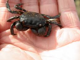About 850 species of crab are freshwater, terrestrial or semi-terrestrial species; they are found throughout the world's tropical and semi-tropical regions. They were previously thought to be a monophyletic group, but are now believed to represent at least two distinct lineages, one in the Old World and one in the New World.The underside of a male (top) and a female (bottom) individual of Pachygrapsus marmoratus, showing the difference in shape of the abdomen.Crabs often show marked sexual dimorphism. Males often have larger claws.